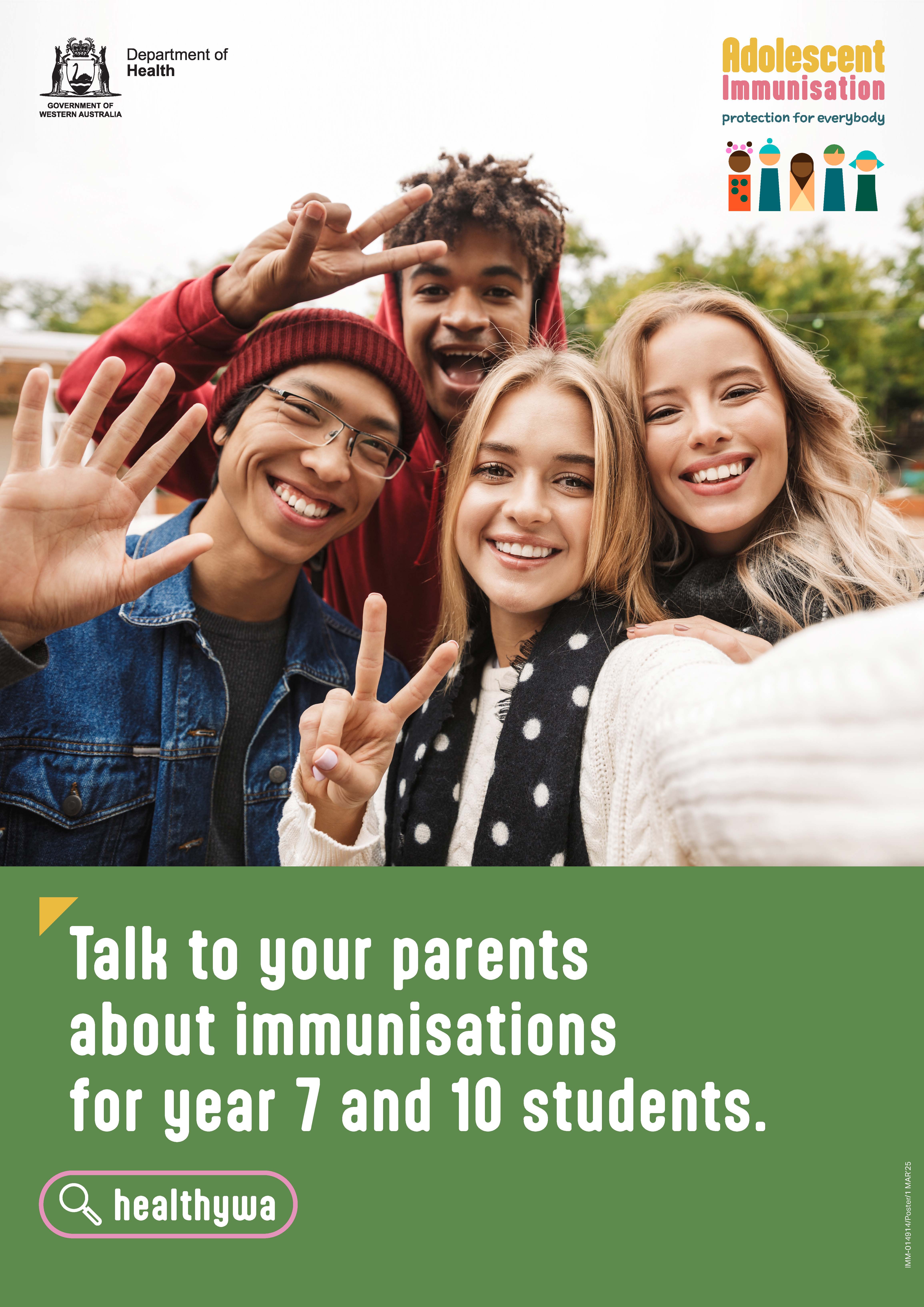 HealthyWA will post adolescent vaccination content throughout the duration of the campaign. You are encouraged to share posts to your channels.